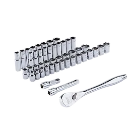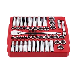 Juego de llaves de carraca y llaves de vaso de 47 piezas 1/2" con accionamiento métrico y SAE con CUATRO LADOS FLAT™